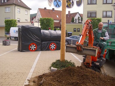 Aber rund herum um diese Stroh-Lok bekam auch der Maibaum vom Fachgärtner
