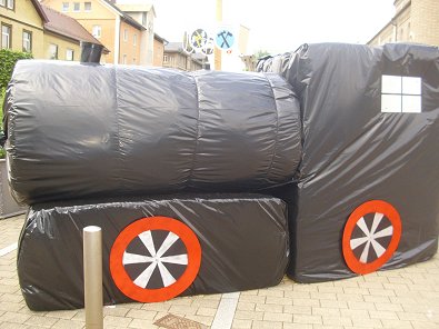 2001 auf Stephansplatz: Remsbahn aus Strohballen |