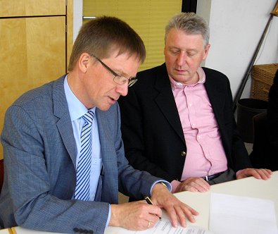 die AIZ hatte dem Schulbürgermeister einen Kuli zur Unterschrift zuges-teckt