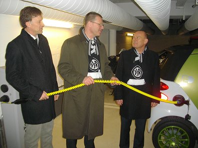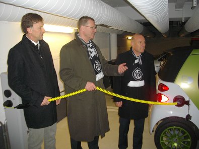 Hermann, OB Gerlach u. Cord Müller an Elektro-Tankstelle.