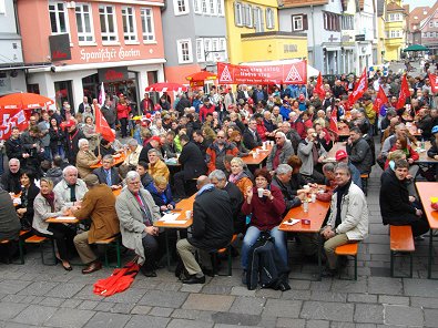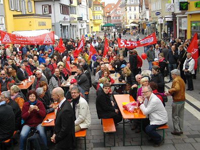 Motto in Aalen: „Gute Arbeit. Sichere Rente, Soziales Euro-