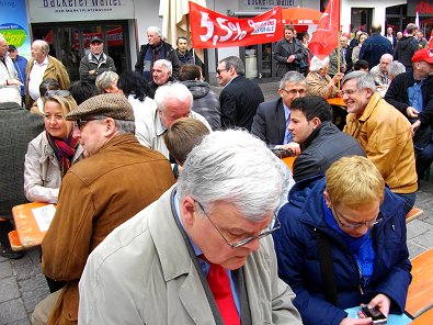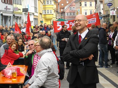11 Uhr am 1. Mai 2013 auf dem Podium der DGB-Maikundgebung vor etwa 500
