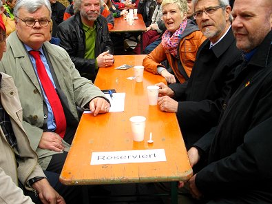 zum Wort und zu den Menschen stehen von links: SPD-Kandidatin Claudia Sünder