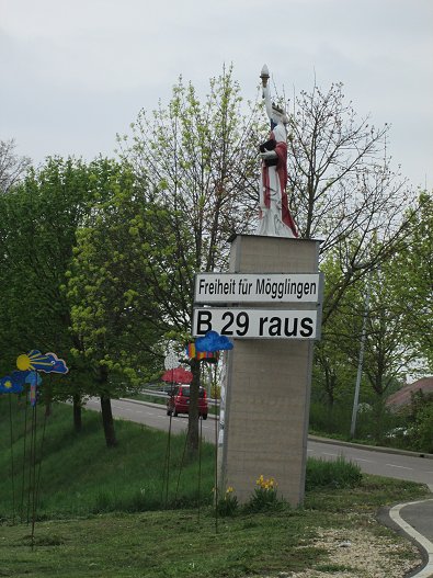 Wird 2015 wie versprochen B 29 ausgebaut? Unser Bild zeigt das "Mahnmal" an