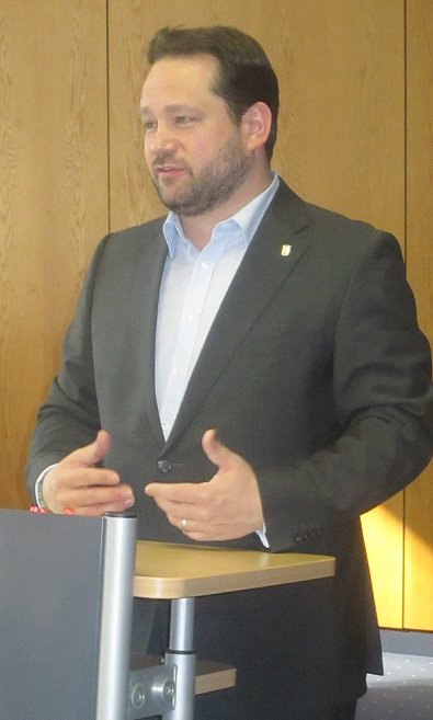 Alexander Bonde warb im Aalener Ratzhaus und appellierte an andere Städte