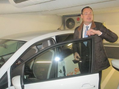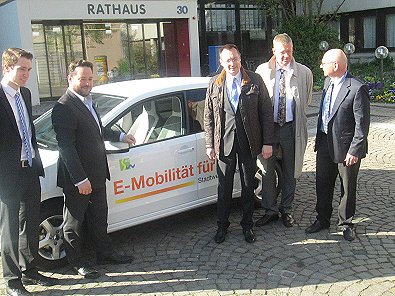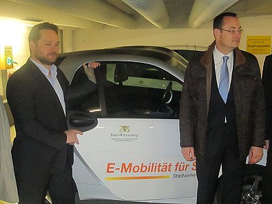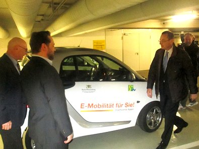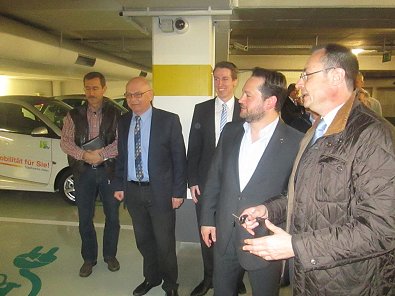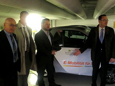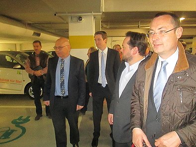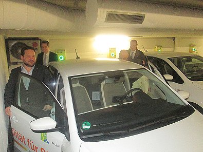 Eine erste Stromtankstelle in der Rathaus-Tiefgarage wurde am 19. März 2012