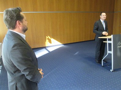 im Kleinen Sitzungssaal in, nachdem er mit OB Rentschler das erste