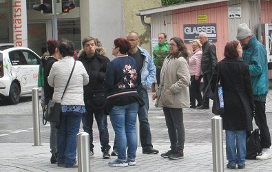 Menschen aber auch Laden- und Lokal-Besitzer aus den Geschäften und Lokalen