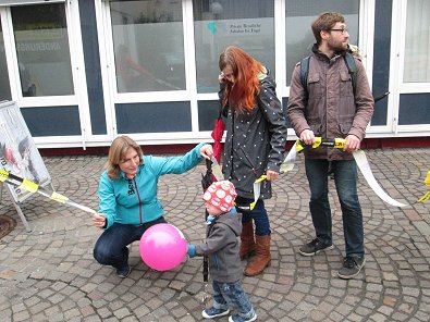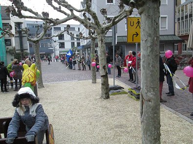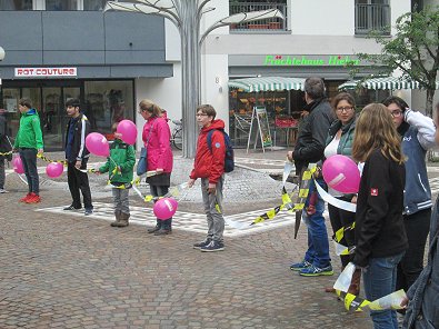 1.000 Aalener haben mit Kette und dem Zaun Aalener City gewaltfrei