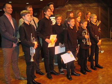 nur fachlich sondern auch mit Humor: Ein Teil der Preisträger (Bläser)