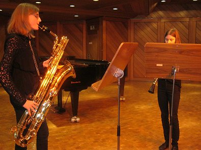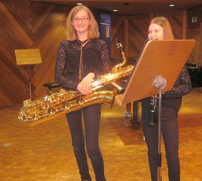 und Kathrin Gaßmann (Saxaphon) aus der Musikschul-Klasse von Daniela Müller