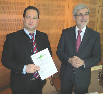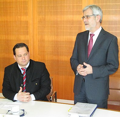 Hände" oder was? Minister Bonde (Grüne, links) und Landrat Pavel (rechts)