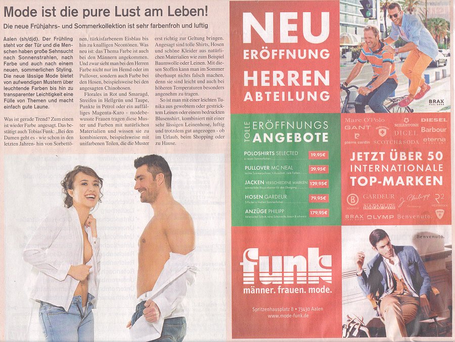 unverblümt Nackt verraten wird) für die Aalener Mode werben, darunter