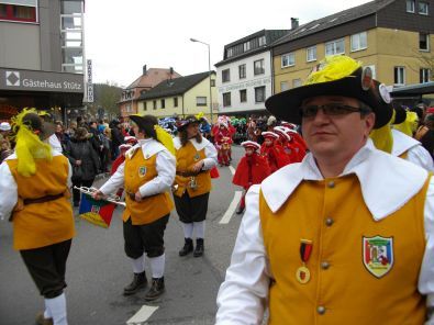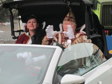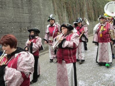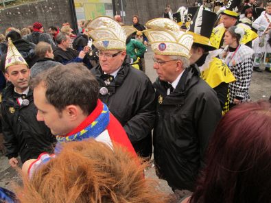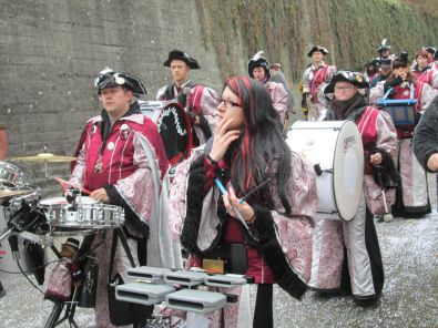 hälften Umzuges mit etwa 2.000 Narren der Nieselregen einsetzte: Die