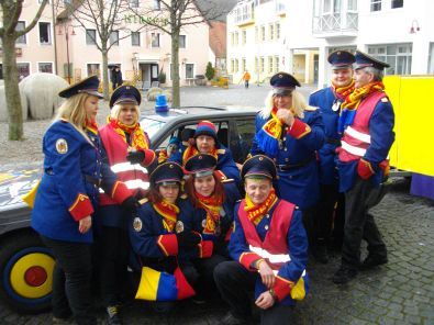 der Narrenpolizei aus Essingen sich wunschgemäß zu Gruppenfotos zusammen