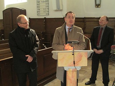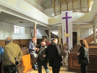 und an der Feierstunde in der Stadtkirche teil nahmen, wo auf einem Podest