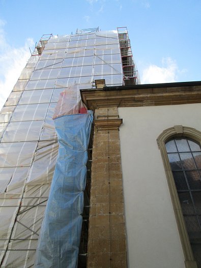 Im Vorfeld wurden vom Glockenturm, sowie von der Langhaus-Ostfassade durch