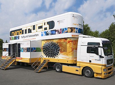 zwei Ebenen präsentiert der nanoTruck die Themenvielfalt nanotechnologischer