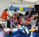 der neben vielen Informationen und Veran-staltungen auch mit Torwand-schießen