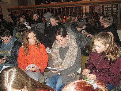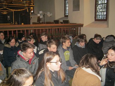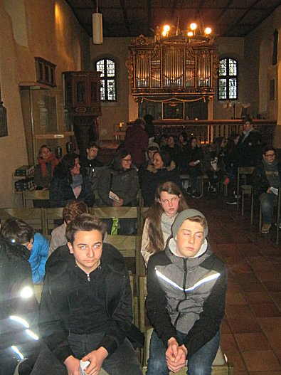 Beginn der Andacht in der Johanniskirche sehr aufmerksam zu hörten. Sie