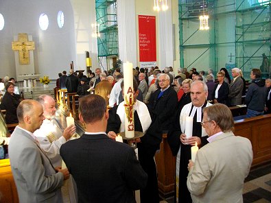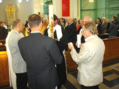 und sind mit einer brennenden Kerze in der Hand in der Salvatorkirche