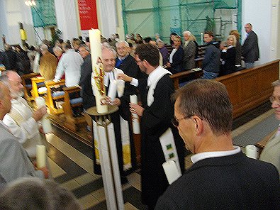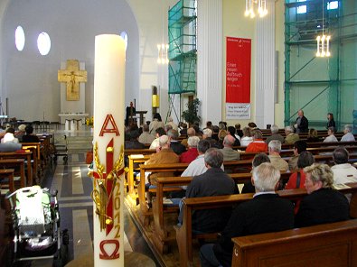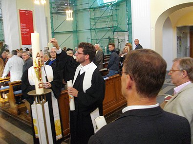Stadtpfarrer Bernhard Richter) haben die Kerze an der Osterkerze in der