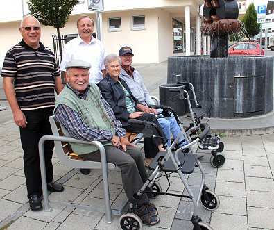 VdK Ortsverband Hüttlingen/Abtsgmünd stiftete Sitz-Bänke: tzlehne, Armlehnen und hilfreiche Fußstütze Dank des VdK wird in Hüttlingen nicht nur von "barrierefrei" geredet sondern es folgen auch tatsächlich vorbildliche Taten ![]() VdK Vorsitzender Ronald Weinschenk (VdK Hüttlingen/Abtsgmünd) und Bürgermeister Günter Ensle (hinten von links) freuen sich zusammen mit rüstigen Rentnern über die neue Sitzbank vor dem Seniorenzentrum.. AIZ-Foto: Sandra Fischer (Gemeinde Hüttlingen) Hüttlingen. Zwei neue Sitzbänke wurden vor dem dem Seniorenzentrum Hüttlingen in der Bachstraße aufgestellt. Eine Sitzbank im Wert von 1500.- Euro spendete der VdK-Ortsverband Hüttlingen/Abtsgmünd an die Gemeinde Hüttlingen. Die Bänke der Marke "Charisma Care" (Erlau) haben eine höhere Sitzposition, die grundsätzlich allen Menschen das Aufstehen wesentlich erleichtert. Auf Wunsch vieler Senioren wurden die Bänke direkt am Senioren-zentrum in Hüttlingen aufgestellt. Die Gemeinde Hüttlingen ist zusammen mit dem VdK Ortsverband 2004 der "Erklärung von Barcelona" beigetreten. Die Erklärung hat das gesellschaftliche Ziel des gemeinsamen barrierefreien Zusamm-enlebens zum Ziel. Aus dieser Sachlage heraus wurde die Konz-eption für ein "Barrierefreies Hüttlingen" gemeinsam mit dem Behindertenbeauftragten der Gemeinde, Eberhard Schäffner, entwi-ckelt. Entsprechend dieser Konzeption wurde vom VdK Hüttlingen die Aufstellung von seniorengerechten Sitzbänken vorgeschlagen - und mit der Spende wurde der Anfang gemacht. Die Gemeinde nahm die Empfehlung dankbar auf und beschaffte auf Gemeindekosten gleich eine zweite Sitzbank. Das Besondere an den beiden neuen Sitzgelegenheiten erläuterte bei Ronald Weinschenk, Vorsitzender des VdK Ortsverbandes Hüttlingen/Abtsgmünd: „Die Bänke haben eine bequeme Sitzfläche, eine höhere Sitzposition, eine angenehme Sitzlehne und Armlehnen sowie eine hilfreiche Fußstütze und ermöglichen somit ein bequemes Hinsetzen, Verweilen und Aufstehen." VdK-Vorsitzender Weinschenk und Bürgermeister Günter Ensle freuten sich, dass der vielfach geäußerte Bürgerwunsch nach Ruhebänken mit Blick-richtung zur Bachstraße umgesetzt werden konnte. R. Weinschenk |