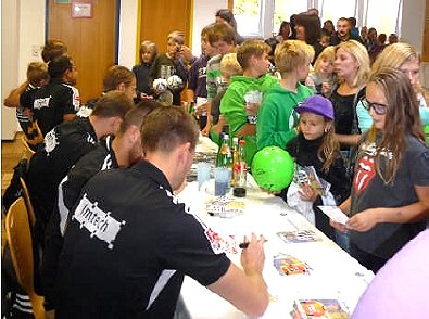 erleben. Die kinderfreundlichen VfR-Fußballprofis Selim Aydemir, Daniel