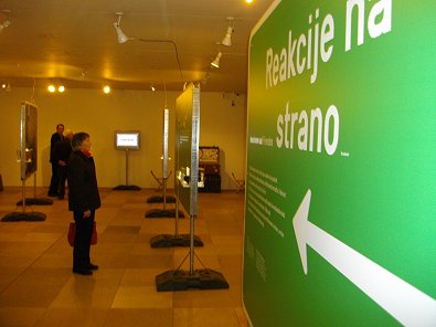 Die Ausstellung überrascht mit moderner Ausstattung: Autobahn-schilder,