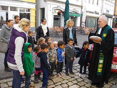 beim Erntedank vor der Stadtkirche mit Stadtpfarrer Bernhard Richter