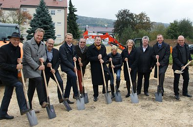 Nachbarn und Baubeteiligte zum Ersten Spatenstich.