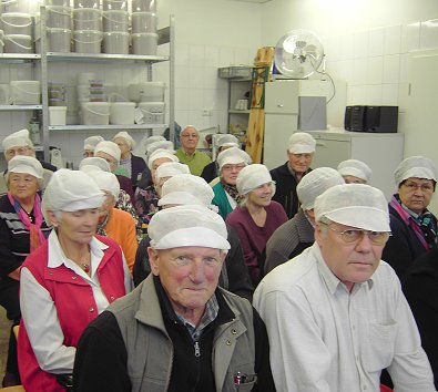 Senffabrik Maier in Schoprndorf: VdK-ler mit den Senfkappen.