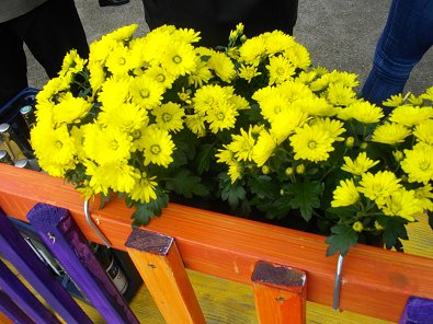 Kinder nahmen die bunte Stein-Sitzbank in Beschlag.