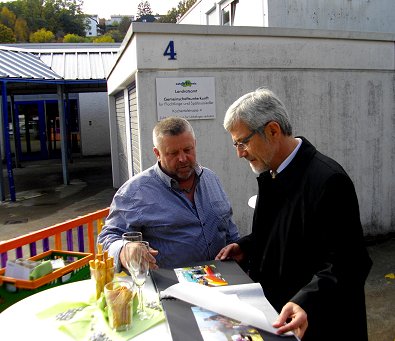 Kompetent:Landrat Pavel und der Künstler im künstlerischen Dialog.