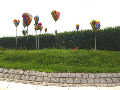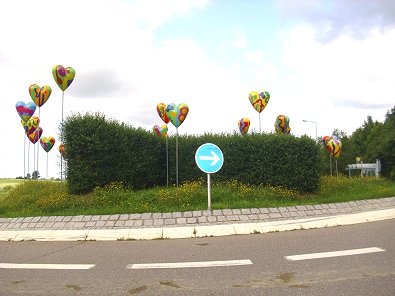 die Installation der Herzen auf dem Kreisel wochenlang in desolatem Zustand.