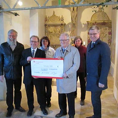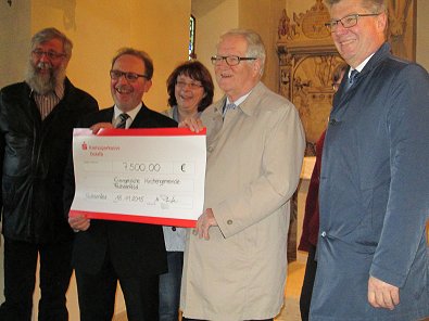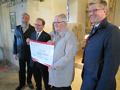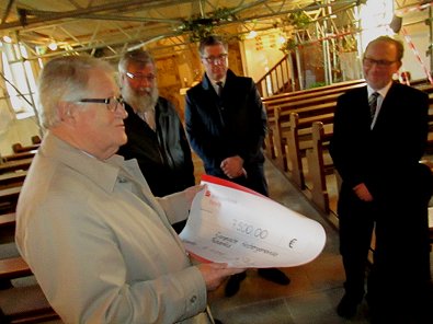 Scheckübergabe vor dem altehrwürdigen Altar: "Nachbarn helfen sich