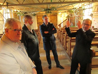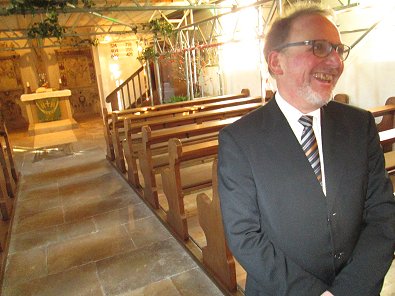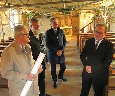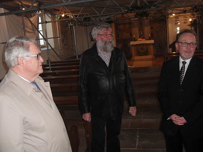Pfeifle (vorne rechts) vor dem Altar der evangeli-schen Fachsenfelder Kirche