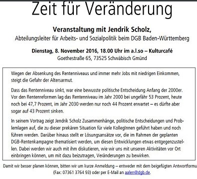 zu folgender Veranstaltung: „Rente in Zukunft? Zeit