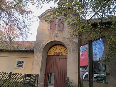 Hof des Schloss-Areals bei den Renn-wagen des Barons "in bzw. vor der der