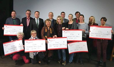delegierten Vertreter der Spenden-Initiativen bei der Scheckübergabe im Kino am Kocher.