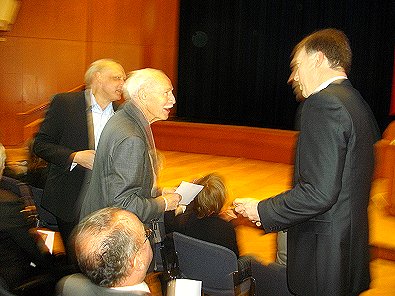 Professor Bausinger (mitte) in der Aalener Stadthalle.