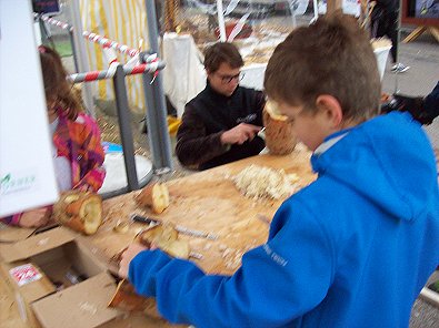 kostenlos bereit gestellten Kürbissen wahre Kunstwerke schnitzen und sich