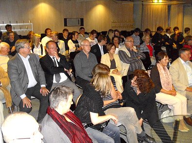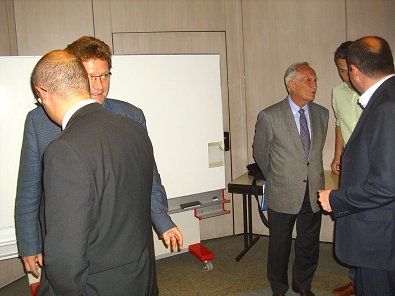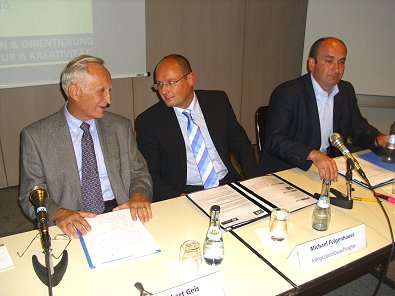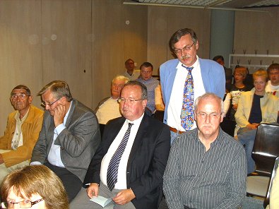 Schwerdtner und von der Schwäpo Dr. Rainer Wiese. Stehend: Ein Fragesteller