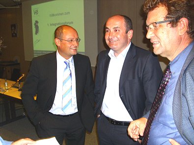 friedlich: Von links Dr. Jürgen Wasella (Leiter der VHS Aalen),