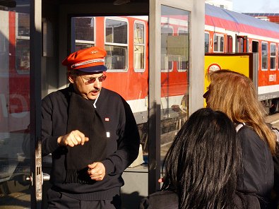 jüngere Schaffner im Hauptbahnhof Aalen überschlägt sich vor der Freundlichkeit