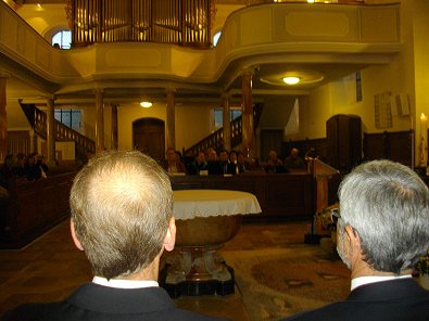 Kirchenbänke in der Stadtkirche gesetzt und eine Predigt gehalten und