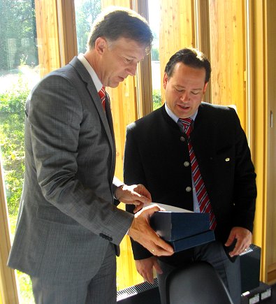 Dann bekam Bonde von OB Gerlach Urgestein von der Ostalb als Gastgeschenk