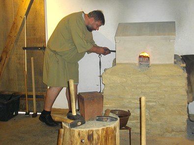 Schmied in der römischen "Baracke" mitten in Aalen.