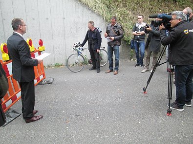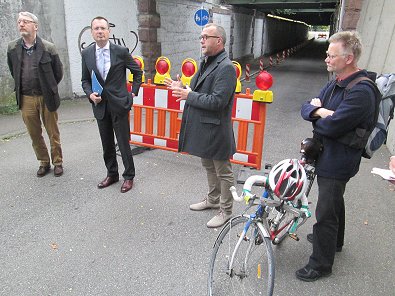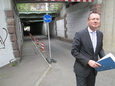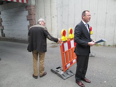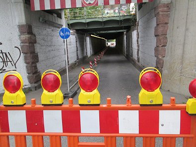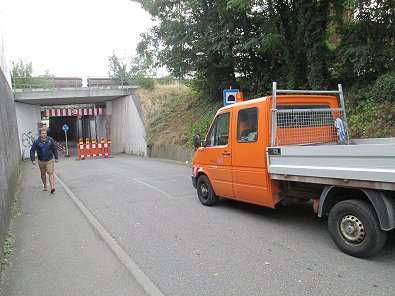 Für Autofahrer gesperrt und laut Fehrenbacher "zumutbar": :Probesperrung begann am 28. September: Kein Autofahrer neidet Fußgängern Tunnel Die Gewohnheit bleibt: Viele beachten das Sperrschild nicht für Tunnel am Stadtoval: Es fehlt noch "Fußgänger-Überweg" OB Rentschler ließ den Tunnel Düsseldorfer Straße für den Fahrzeugverkehr als 1. Testphase sperren, allerdings wurden die Barken am Ex-Fußgängerweg noch nicht entfernt und wer will da durchlaufen ohne Licht? AIZ-Fotos: Dieter Geissbauer Aalen. Freie Fahrt hieß es am Montag dem 28. September 2015 um 15 Uhr für Fußfänger und Radfahrer während auf dem Stadtoval-Gelände die Bagger und Raupen lärmten, als vor dem Tunnel in der "Düsseldorfer Straße" erstmals mit dem Sperren des Tunnels Ernst gemacht wurde. Mit dabei waren auch Anlieger aus dem Hirschbach und Rötenberg. Für sie war diese Stunde der Sperrung ein Freudenfest, das sie niemals mehr vermissen möchten. Erste Radfahrer testete den gesperrten Tunnel zusammen mit OB. Im Gegenteil: Sie testeten als Erste den Tunnel mit dem leider noch schmalen Steg für Fußgänger (Barrieren waren noch nicht abge-baut) und selbst OB Rentschler (SPD) und Bürgermeister Fehrenbacher (SPD) und Regio-TV ist es nicht entgangen, dass schon der erste Radfahrer eingeladen wurde und das sichere Fahren durch den Tunnel schon bei der Anfahrt sichtlich genoß. Die Anwohne des Stadtoval sind begeistert: Endlich Anbindung der Fußgänger vom Stadoval in die City und das muss Standard bleiben OB Rentschler sagte, der Gemeinderat der Stadt Aalen beschäftige sich schon seit längerem mit dem Problem Gefährdung der Fußgänger und Radfahrer auf der Düsseldorfer Straße im noch dunklen Tunnel (eines Tages soll er auch nachts hell leuchten). Die nun erfolgte Sperrung des Tunnels nur für Autofahrer sei nur ein '"Test" und erst wenn dieser Langzeit-Test positive Ergebnisse bringe werde man den Umbau bzw. Ausleuchtung des DB-Tunnels für Fußgänger und Radfahrer vollkommen in Angriff nehmen. Die aktion sei in "Aktion sichere Wege für Fußgänger und Radfahrer" benannt worden und nicht ganz kritiklos. Die Akzeptanz für "sichere Wege" gelte vor allem für den Rötenberg und Hirschbach. Am Ende werde - vorausgesetzt die täglich 1.400 Autofahrer verursachen kein Verkehrschaos am Rötenberg-Kreisel und am Lokschuppen oder Hochbrücken-Kreisel - das Provisorium beendet und die Düsseldorfer Straße für Autos usw. lebenslang gesperrt. Am neuen "Stadtoval" gehen dann die Radwege munter weiter... Dieser konsequenten Planung widersprach auch nicht Bürgerm-eister Fehrenbacher, den der OB liebe- und respektvoll "oberster Hirschbächler" bezeichnete, der vor allen diesen Tunnel als "sicheren Fußgängerweg auch für das entstehende Stadtoval" sieht. Fehrenbacher: Die Autofahrer müssen seit der Sperrung des Tunnels nur genau eine Wegstrecke von 500 Meter mehr in Kauf nehmen und das ist jederzeit zumutbar". OB Rentschler beauftragte Fehrenbacher als Chef des Ordnungsamtes auch wegen nur der halbseitigen Sperrbaken genauestens überwachen zu lassen, wer von den Autofahrern dennoch weiter durch den Tunnel fährt und natürlich am Ende des Tunnels ein Knöllchen zurecht bekommt und vielleicht sogar seinen Führerschein verliert. Für OB Rentschler war es offensichtlich eine Überraschung, dass zur Sperrung keine Autofahrer-Proteste stattfanden, sondern nur welche kamen, die endlich der fußgängerfreundlichen und fahr-radfreundlichen Stadt Aalen gratulierten, dass dieses lebensge-fährliche Befahren des Tunnels durch Autofahrer "endlich ein Ende hat". Der verwaiste Spielplatz wird jetzt mehr Besucher bekommen oder? Zwar ist im Tunnel in all den Jahren nichts passiert, sagte die Pressesprecher der Stadt Aalen Haisch der AIZ, aber "vor dem Tunnel auf der anderen Seite gab es schon Unfälle. Dennoch sei der schmale Fußgängerweg kein sicherer Weg gewesen. Und die Autofahrer die erst vor dem Tunnel wenden mußten weil sie das Sperrschild übersehen haben, auch sie zeigten Verständnis: "Auch für uns Autofahrer war die enge Durchfahrt eine gefährliche Sache". Also konnte kein einziger Gegner von der AIZ festgestellt werden - auch nicht Chefredakteur Dieter Geissbauer, der diesen Tunnel täglich mindestens zwei Mal befahren hatte. Im Gegenteil: Der Gemeinderat sollte den Mut dazu haben diesen Testlauf bald zu beenden und den Tunnel auszubauen. Allerdings haben auch "Hirschbächler" die AIZ darauf hingewiesen, dass zwar am Lokschuppen ein Fußgängerüberweg gebaut wurde aber noch ohne Zebrastreifen und "dass die Autos und Lkw's mit über 100 km/h um die Ecke vom Finanzamt her rasen und es ein Wunder ist dass dort noch kein Fußgänger tödlich überfahren wurde". Das Rezept: "Hier am Überweg eine feste Radarkontrolle mit Blitzer zu montieren - dann hört dieser fast tödliche Unfug sicher schnell auf..." Dieter Geissbauer PDF-TUNNEL-Plan |