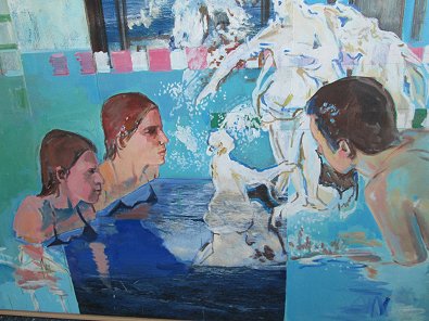 Erdgas. Karin Brosa, Remseck, Gemälde Öl auf Nessel, Sparte Freibäder/Hall-enbad